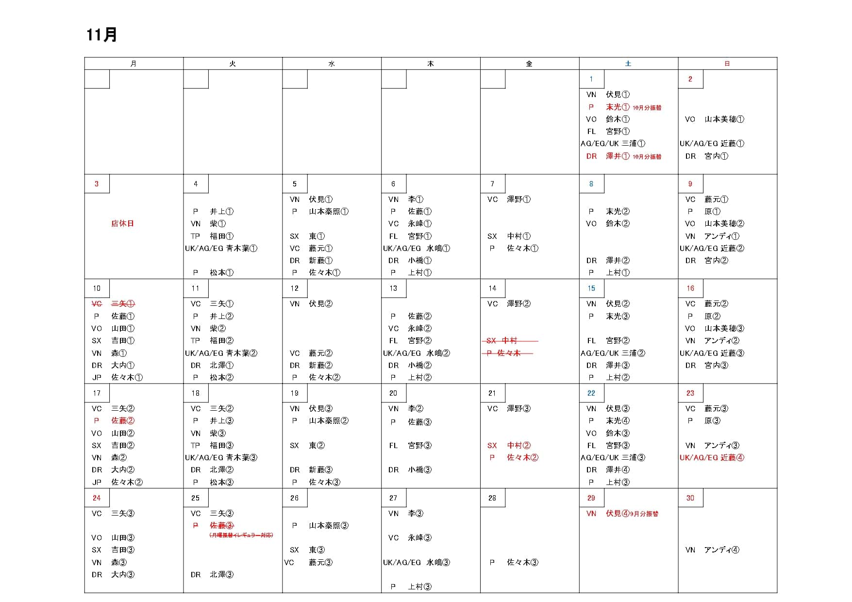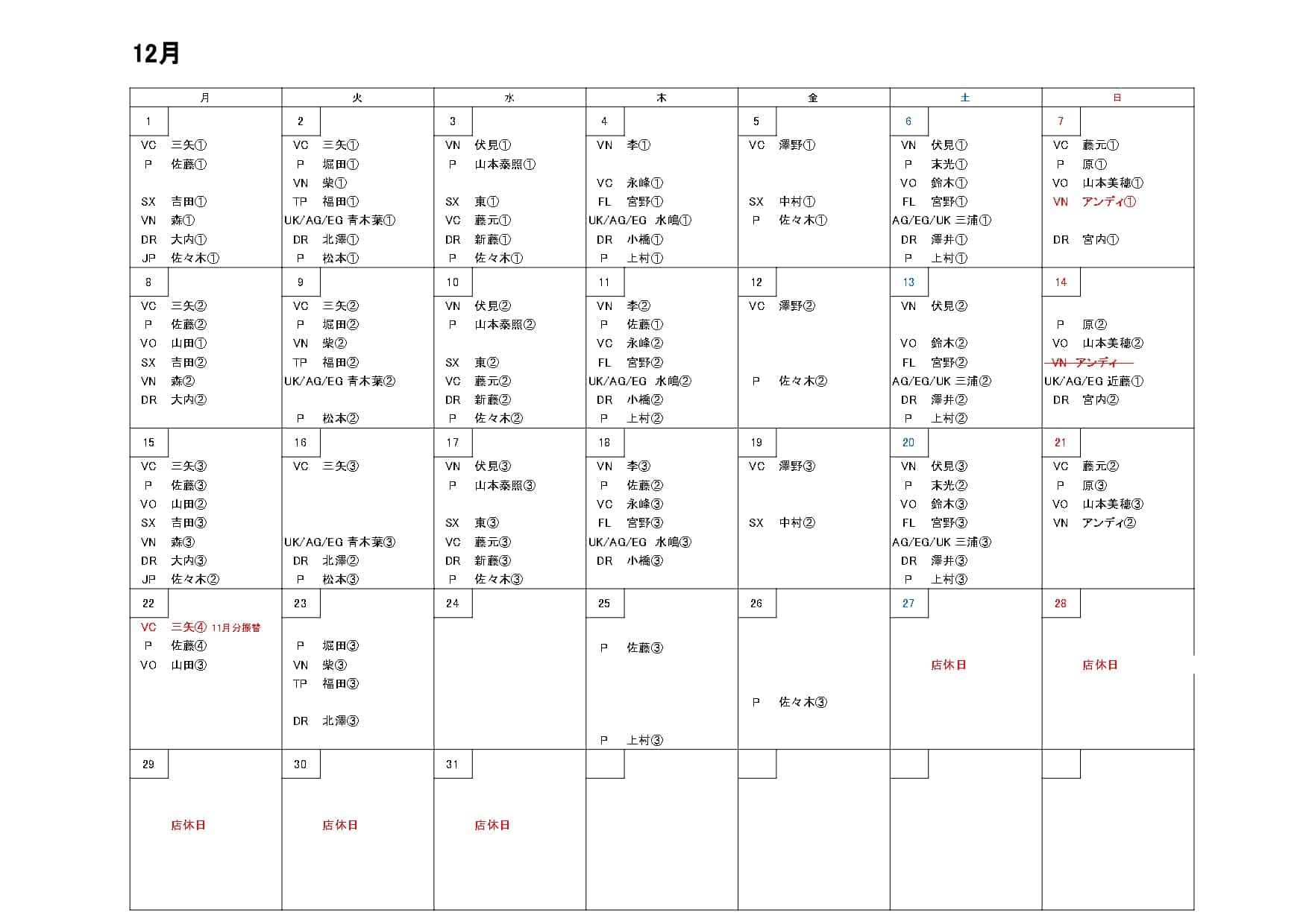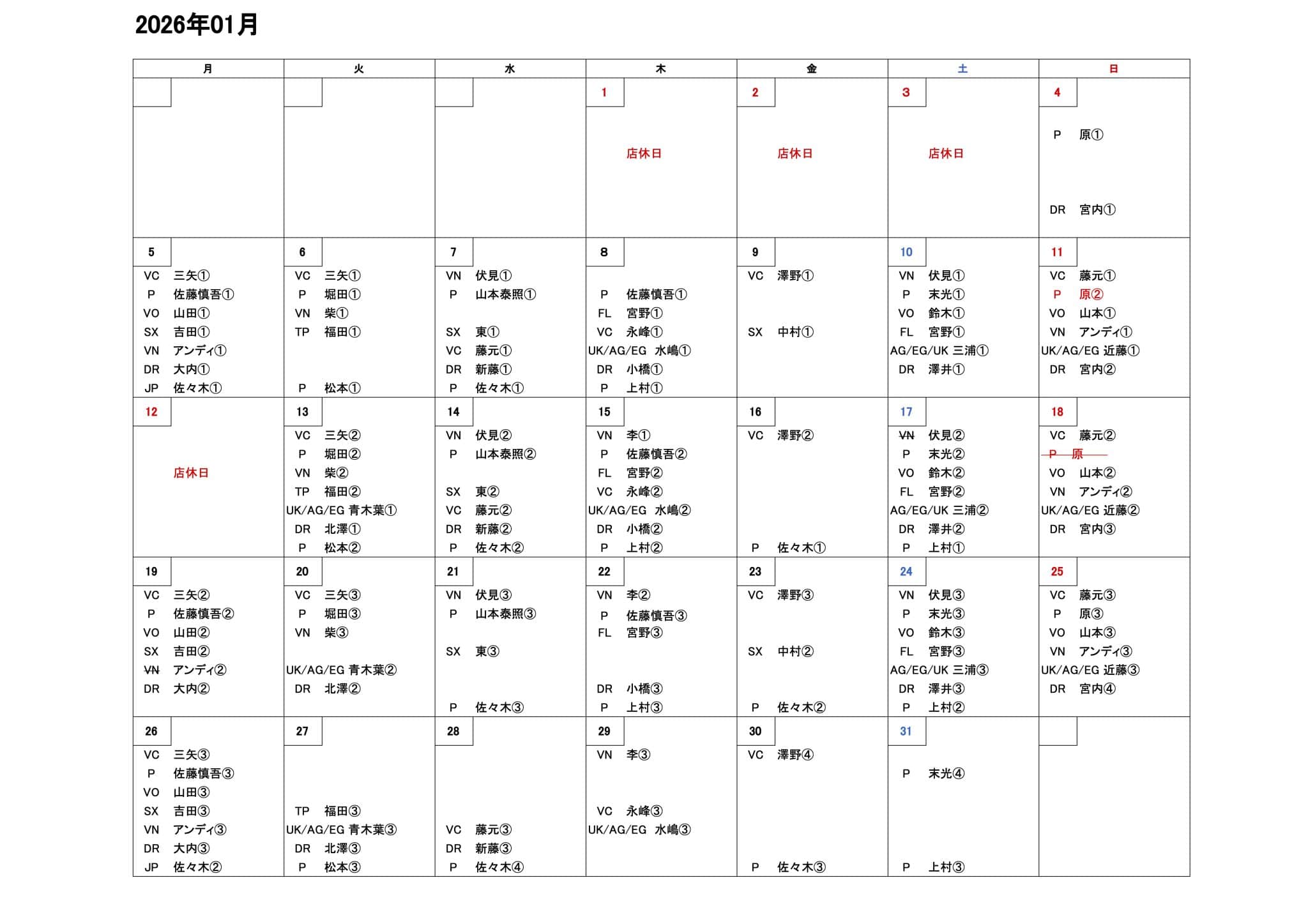 2025年 11月〜2026年1月レッスンスケジュール♪ ※一部訂正